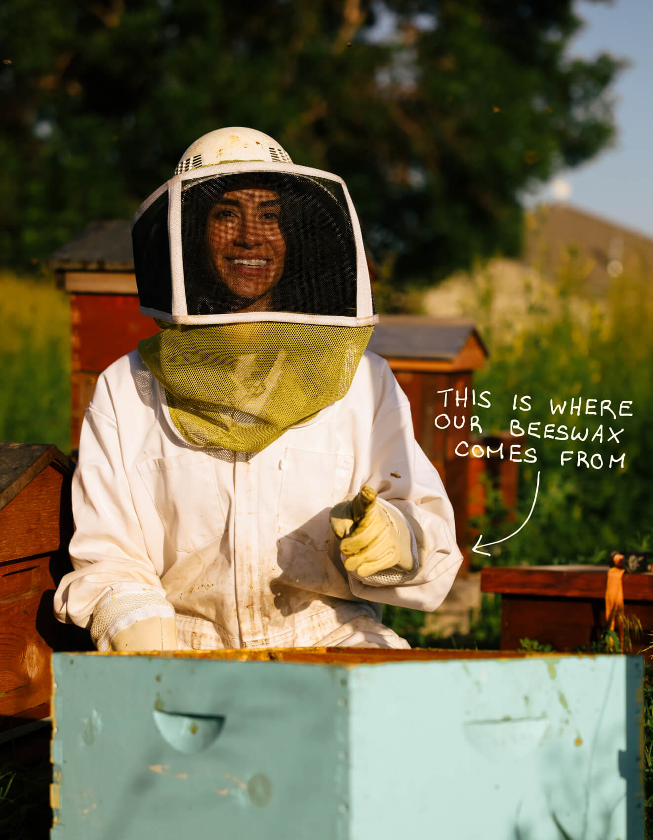 Beth and her hives reside a brief 30-minute drive from the home of our founder, Stevie! She hand-delivers her beeswax whenever we need to re-up. To us, Beth is more than a beekeeper; she's a true steward for her hives. When we came to visit, we realized how much care she takes, delicately tending to them, making sure no bee is harmed. She’s the living embodiment of our commitment to earth - a testament to the symbiotic relationship between nature and human.